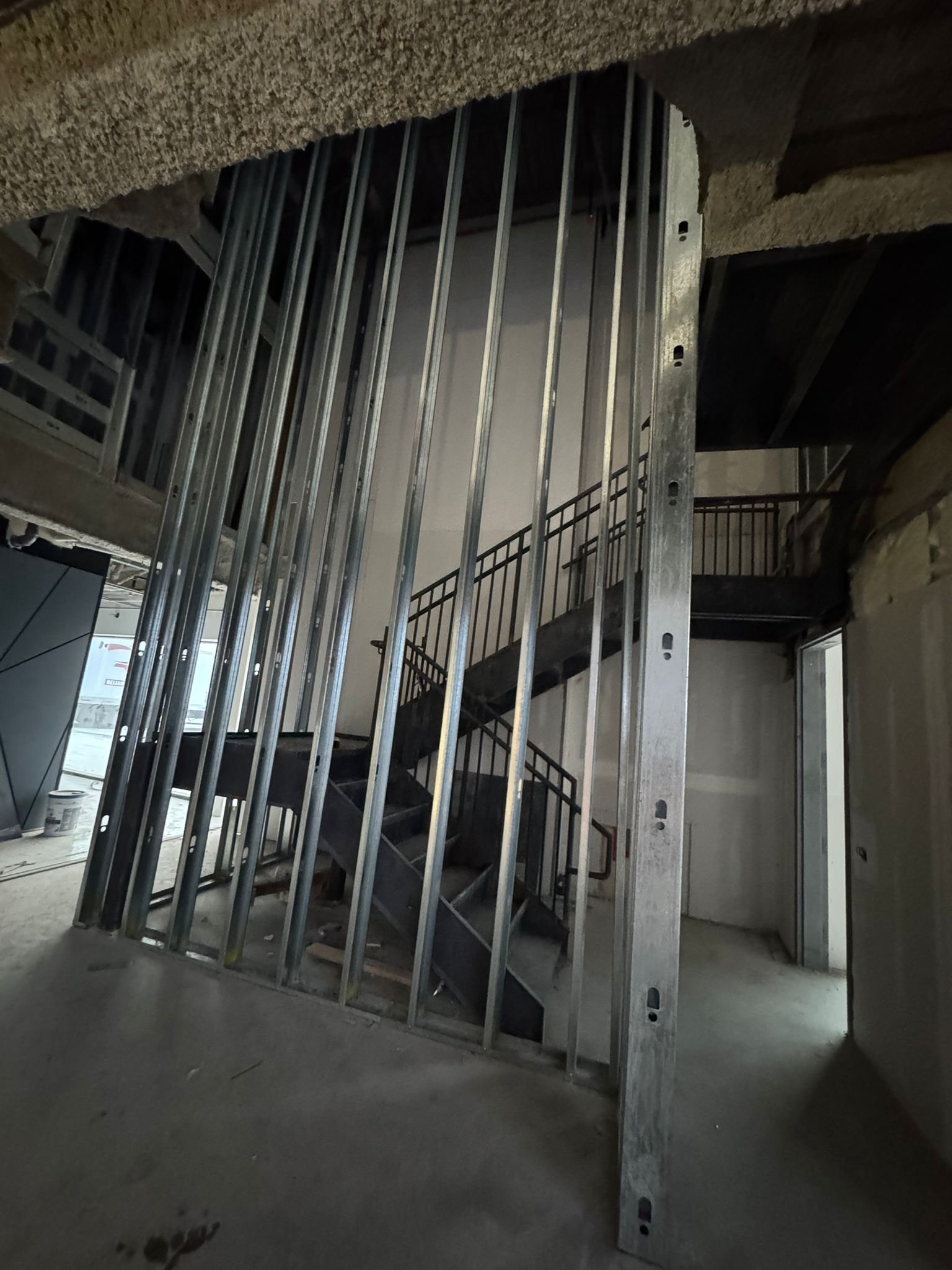 Commercial-grade metal stud framing for straight, durable interior walls.